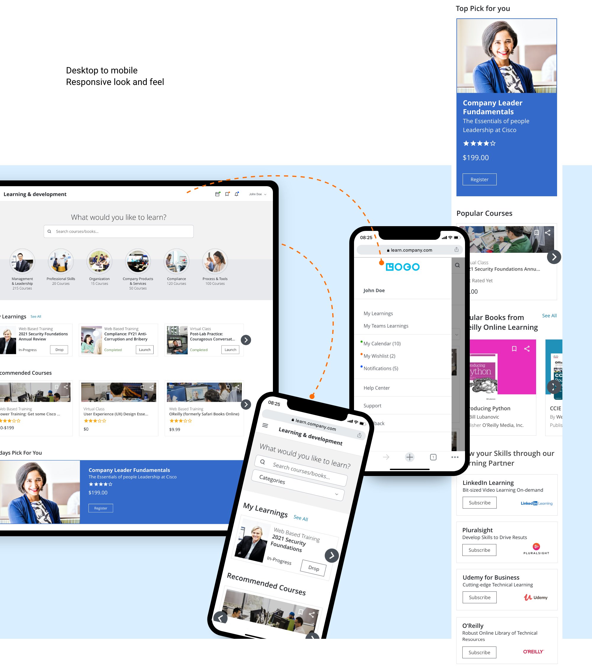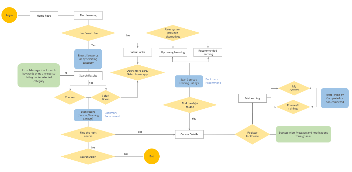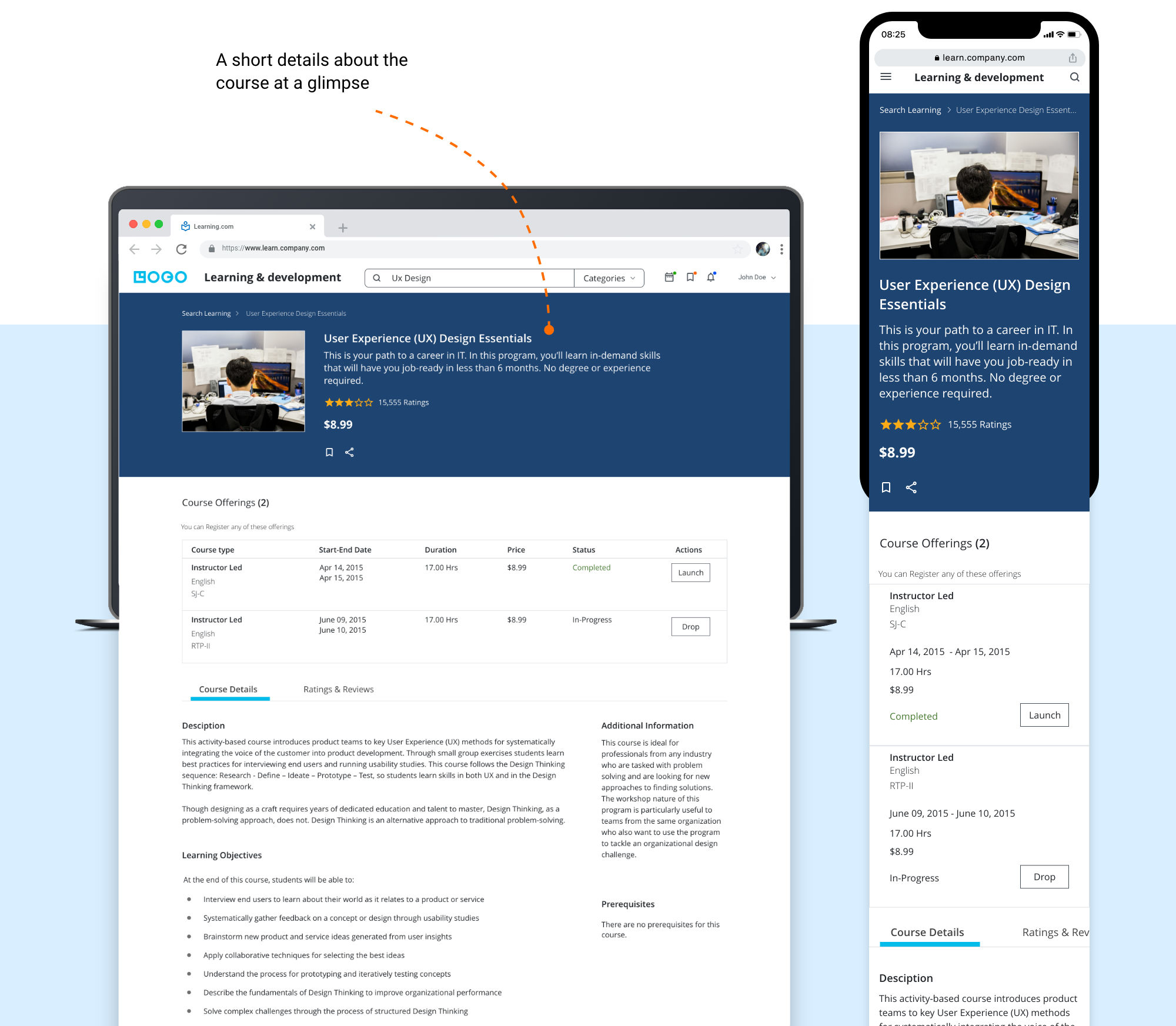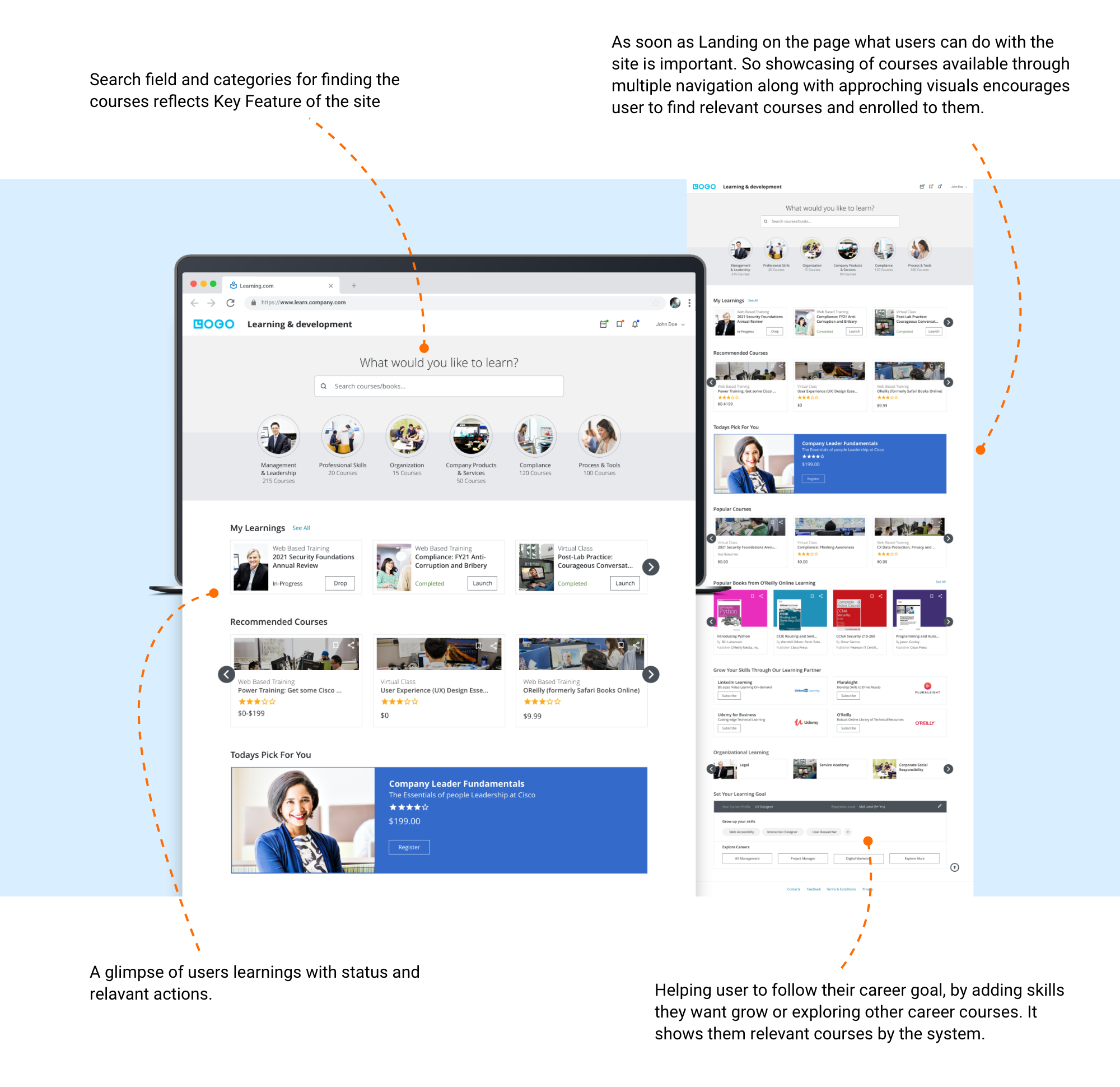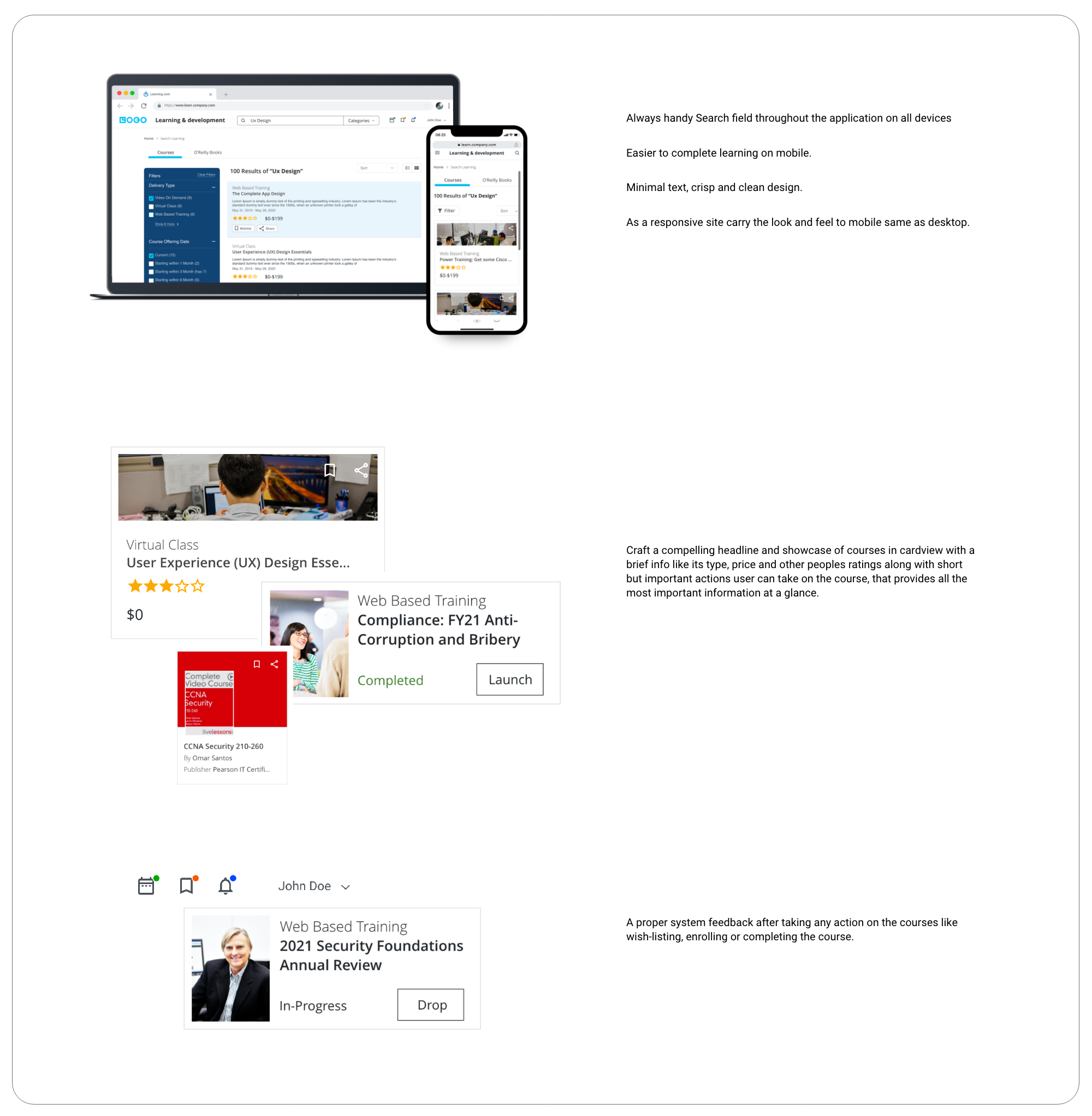 The viewer should be able to view exact courses available relevant to them for their career growth and what they can do within seconds of landing on the learning portal.
