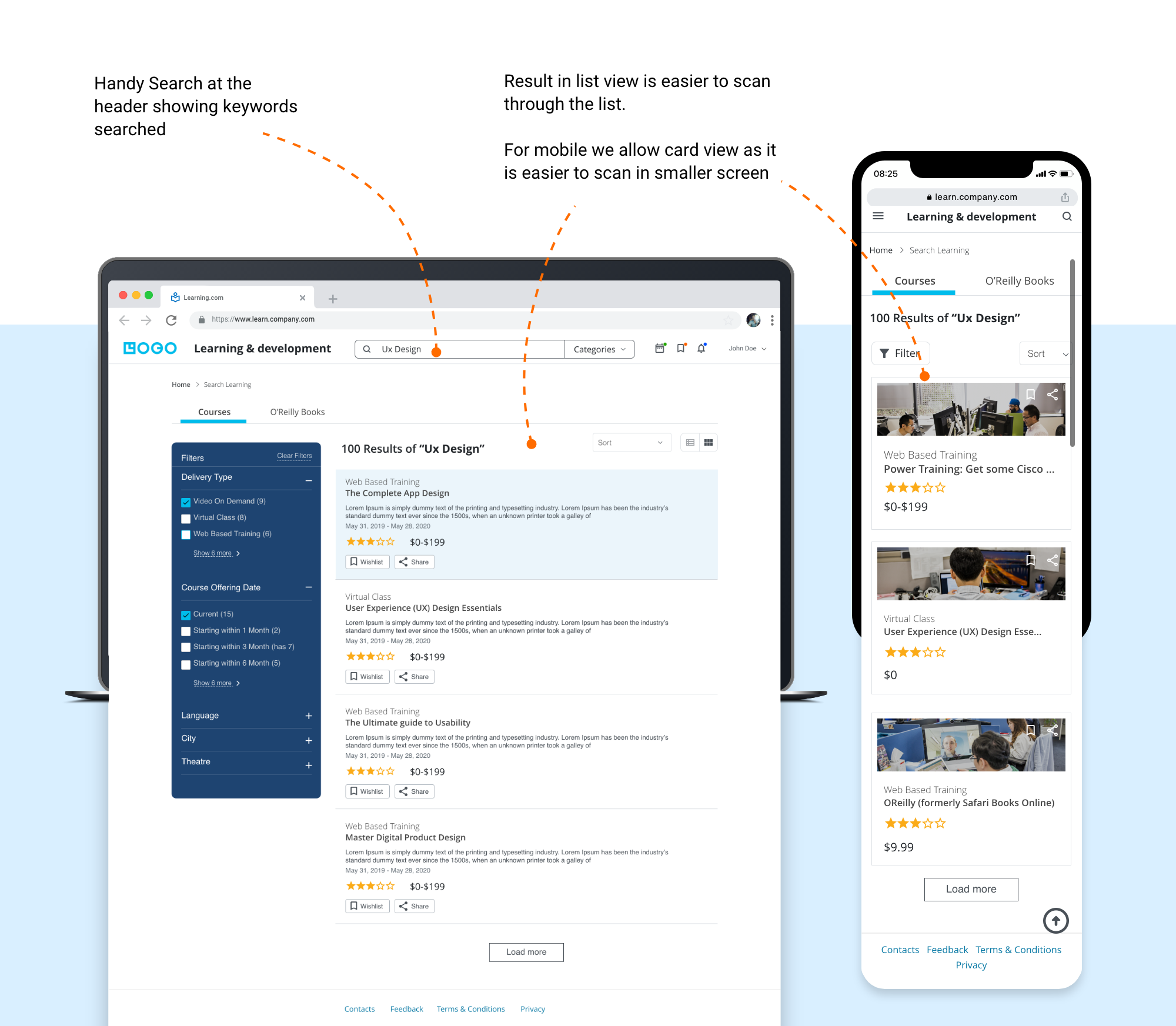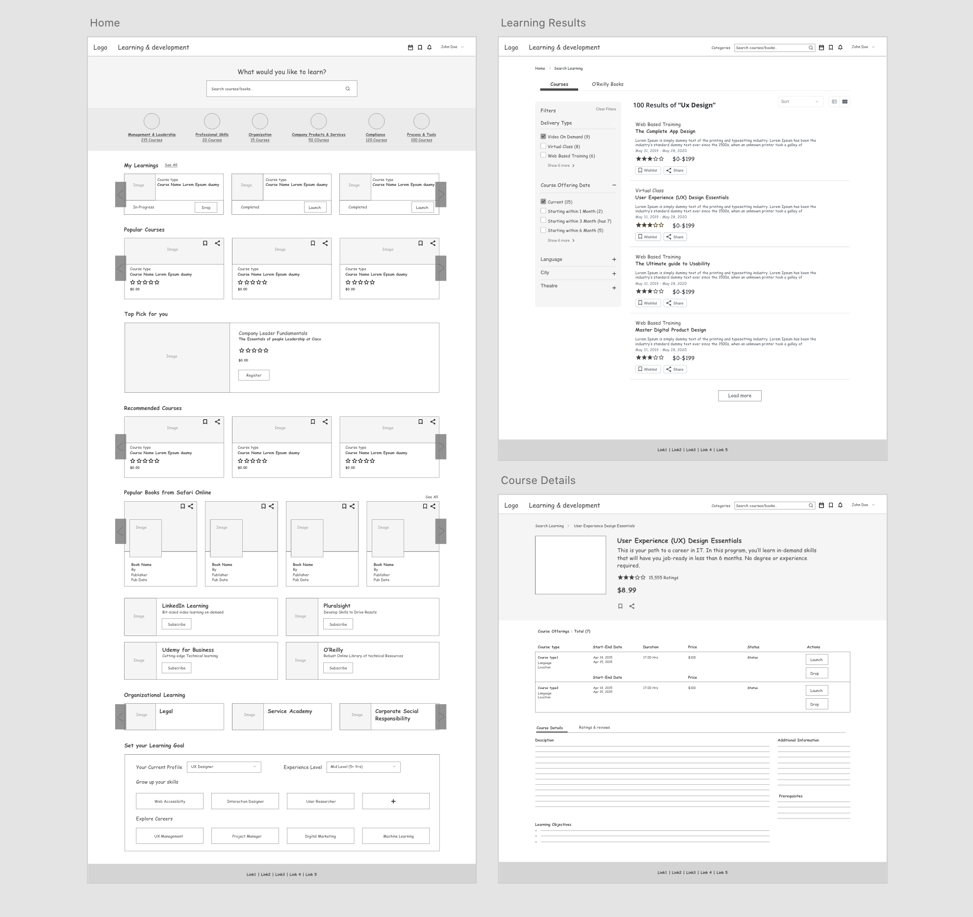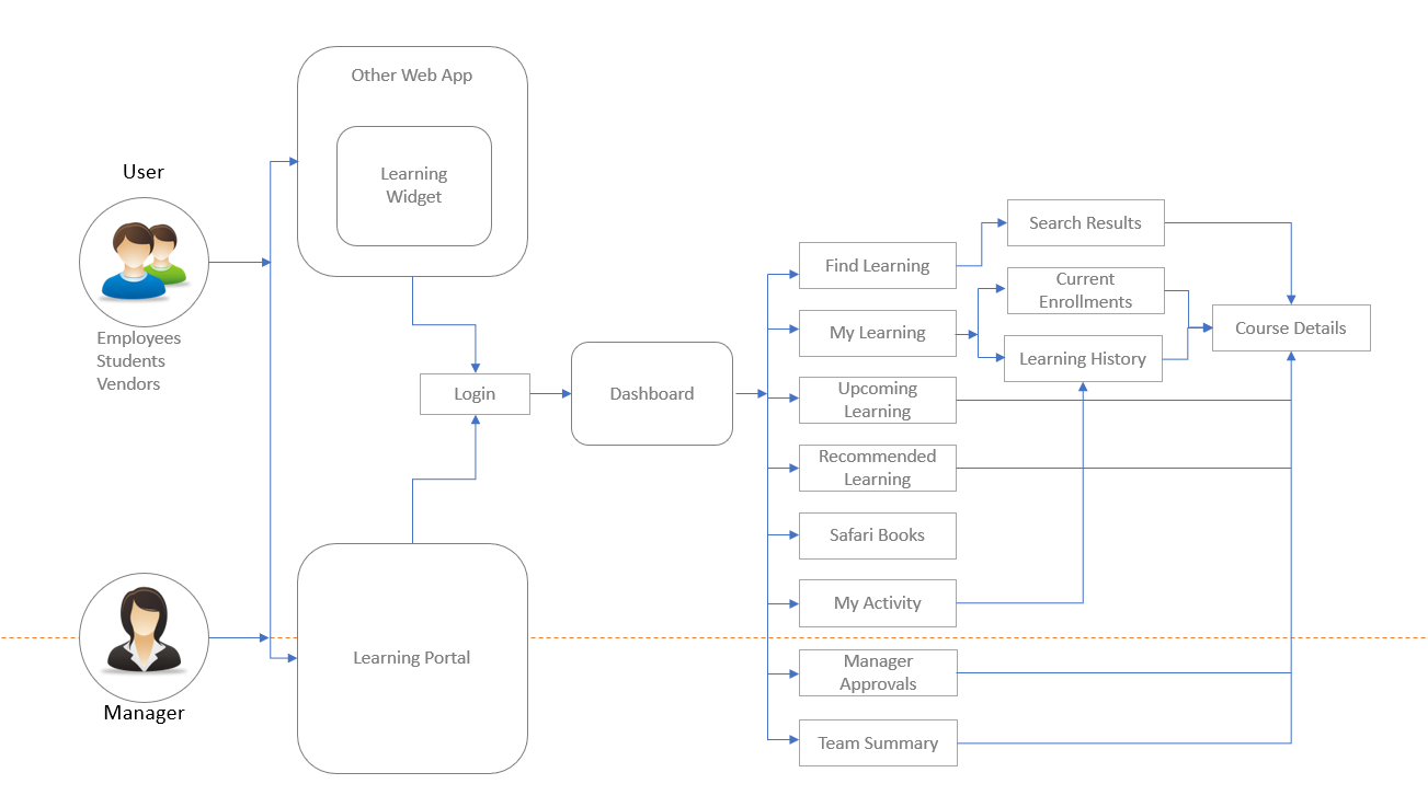 The viewer should be able to view exact courses available relevant to them for their career growth and what they can do within seconds of landing on the learning portal.